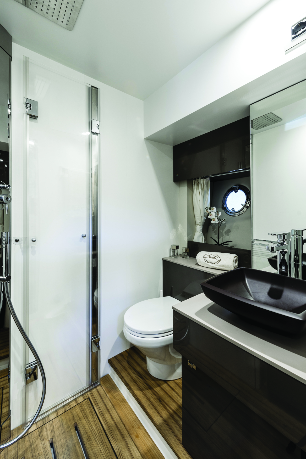 Als we de cabine binnenkomen worden we verwelkomd door het prachtige en ruime leefgedeelte. De functionele en ruime keuken staat recht over de zitbank met tafel, tijdens de koudere nachten kunnen we de avonden ook hier perfect spenderen met iets meer privacy. Helemaal vooraan is een ruime slaapkamer voorzien voor de eigenaars, naast ta van opbergruimte is er ook een aansluitende badkamer met toilet voorzien. De gastencabine bevind zich achteraan en heeft ook een apart gasten toilet en badkamer.